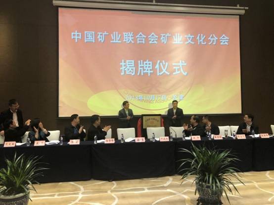 10月17日下午,中国矿业联合会矿业文化分会成立大会在天津举行。会议审议通过了矿业文化分会简则和第一届顾问、理事长、秘书长、副秘书长、理事会理事、常务理事和副理事长名单,全体参会人员共同见证了矿业文化分会揭牌仪式。
