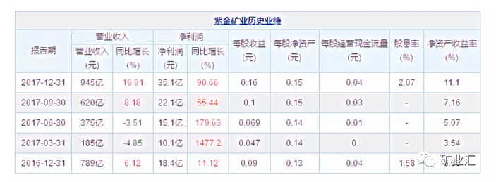 紫金矿业2018年营收业绩1059.94亿元,同比增长12.11%。净利润40.94亿,同比增长16.71%。三家企业中,紫金2018年营收业绩排第三位,净利润第一。