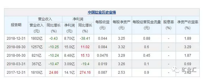 对于利润减少,中国铝业表示,主要为原铝板块铝价同比降低,原材料价格同比上涨。