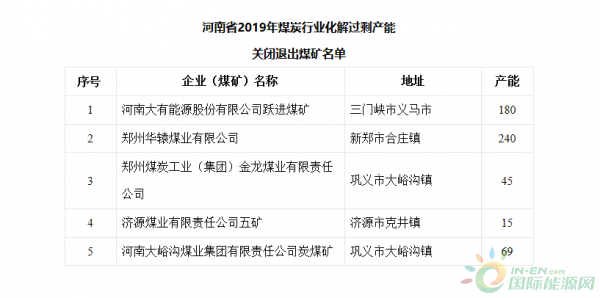 河南省2019年化解煤炭过剩产能关闭退出煤矿名单公示